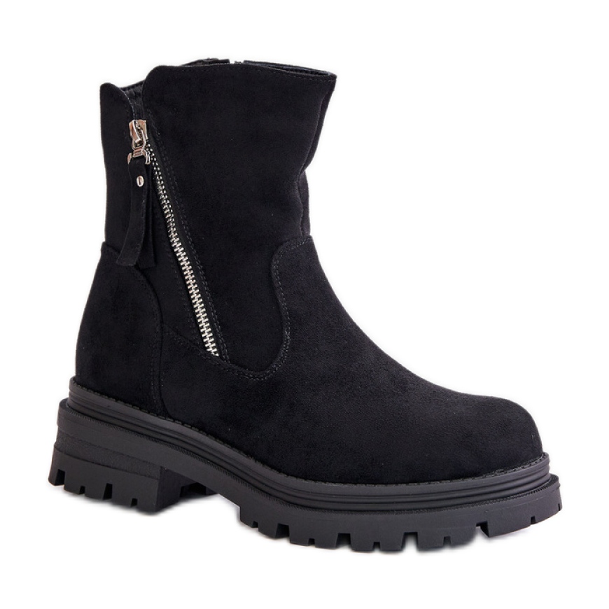 Deras rundade näsor ger subtilitet, och dessutom säkerställer exceptionell komfort isolering av interiören med en mjuk skorfilt. Denna modell är inbäddad på en stabil platt häl och plattform, vilket innebär att du kan gå fritt i dem i många timmar. Dragkedjan underlättar inte bara att sätta på och ta bort, utan lägger också till en modern karaktär till stövlarna.