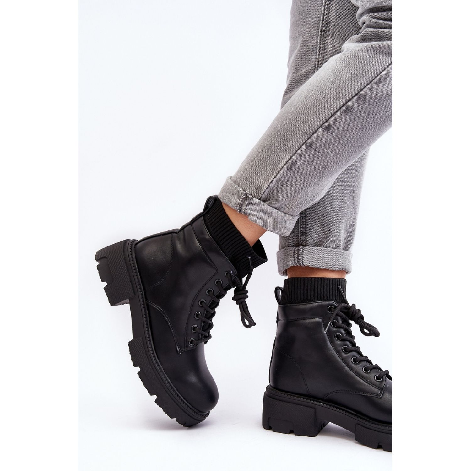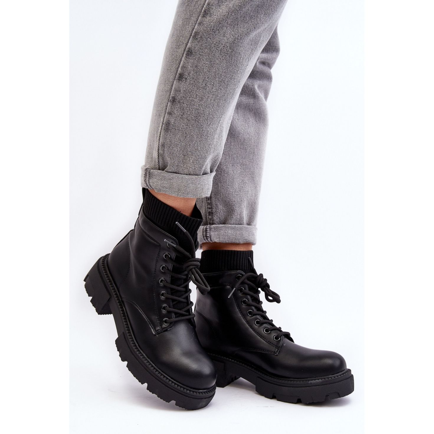 Fångarna är inbäddade vid en solid, platt häl 5 cm hög och en plattform på 3 cm, vilket säkerställer stabilitet och komfort under alla förhållanden. Med en övre del av 15 cm skyddar denna modell perfekt vristarna, och det insatta snittet med klassisk snörning framtill ger dem karaktär. Rundade tår och stelna hälen betonar inte bara det fashionabla utseendet, utan också komforten med att bära.