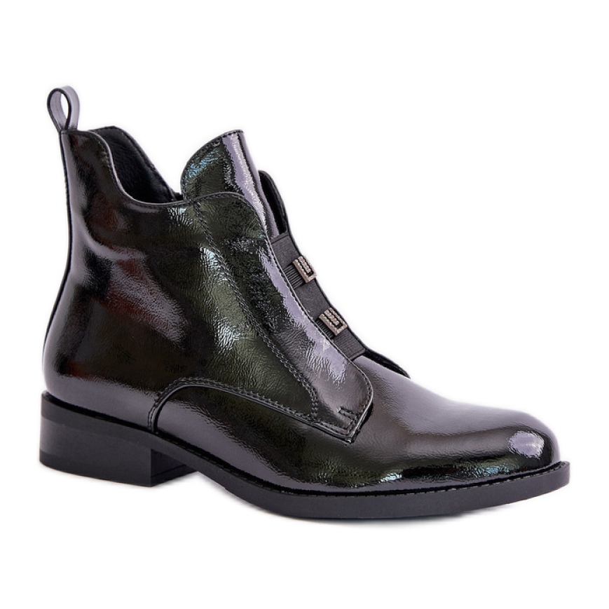 Stövlar är fäst med en blixtlås, vilket gör det lättare att ta på sig och ta av. Rundade näsor ger dem ett klassiskt utseende, och dekorativa detaljer och elastik framtill gör att de får en unik karaktär. Skorna inre är isolerad med tyg, som ger värme på svalare dagar, och insatsen av Eco Leather -garantier komfort.