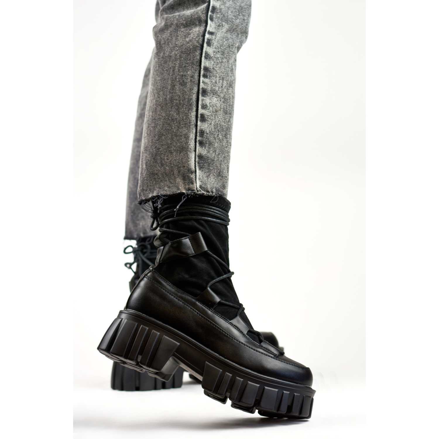 Praktisk snörning betonar inte bara stilen, utan låter dig också exakt matcha fotens form. Den runda näsan gör att dessa stövlar perfekt blandas med olika stiliseringar - från avslappnad till mer eleganta. Dessutom innebär hälhöjden på 5,5 cm att de säkerställer komforten att bära varje dag utan att ge upp kvinnlig charm.