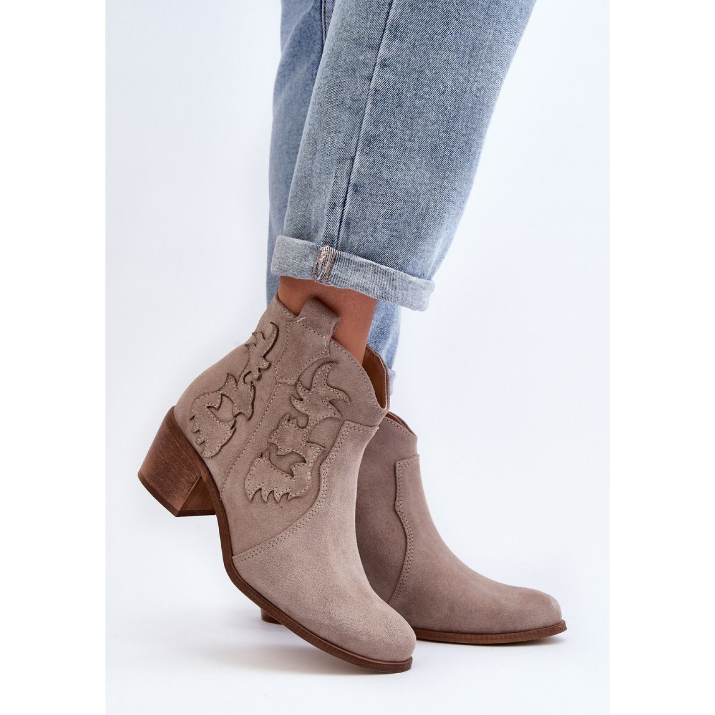 Hälen i form av en låg stolpe med en höjd av 5,5 cm säkerställer stabilitet och komfort, så att du kan bära dem hela dagen utan att oroa dig för trötthet. Stövlar är fäst med en praktisk blixtlås, vilket gör det lättare att ta på sig och ta av. Rundade näsor betonar deras eleganta design, vilket gör dem till ett perfekt komplement till många vårstyliseringar.