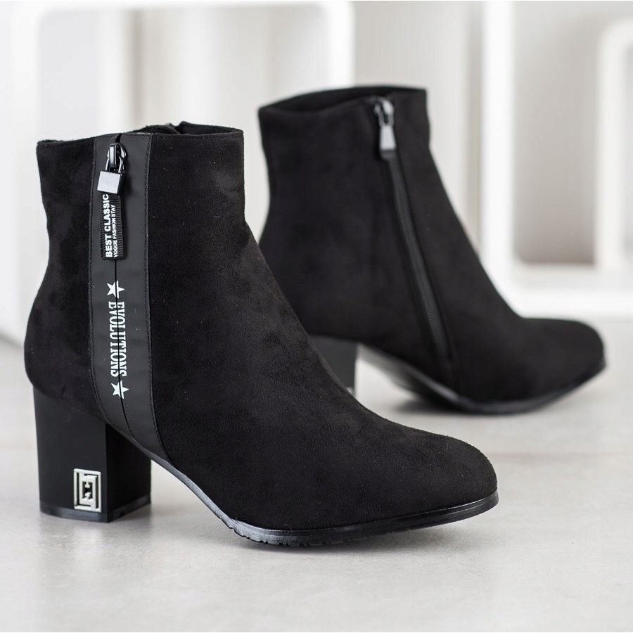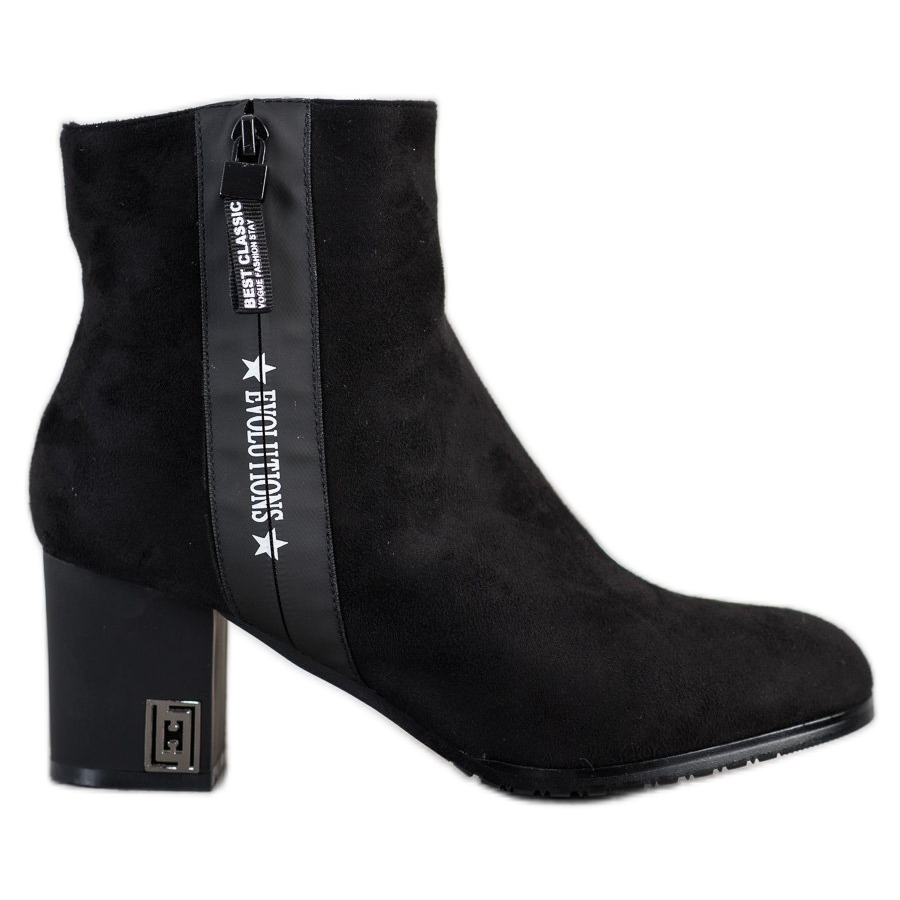 Upptäck elegans och komfort i vardagsbruk tack vare Gogo Evolutions högklackade ankelboots i en klassisk svart färg. Dessa avslappnade damstövlar gläds inte bara av sitt utseende, utan också med kvaliteten på utförande - ovandelen är gjord av ekologiskt läder som imiterar mocka, vilket säkerställer både hållbarhet och omsorg om miljön.
