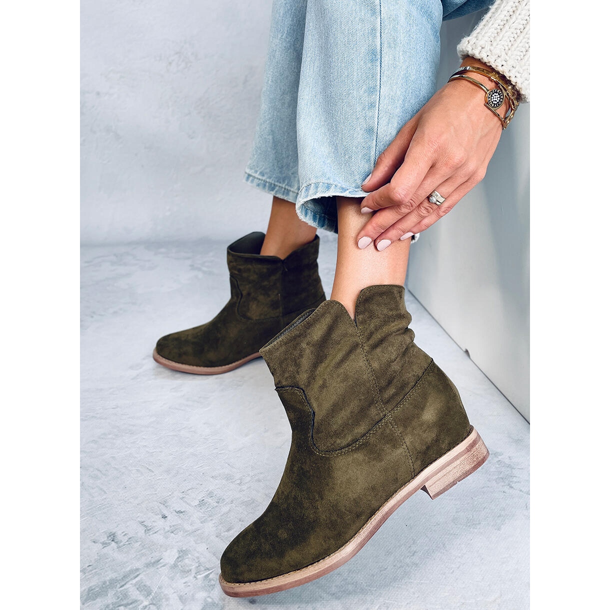 Letar du efter stövlar som kommer att lägga till några centimeter utan att ge upp komfort? Gröna hjortgröna stövlar på en dold kil med en höjd av 5,5 cm är den perfekta lösningen för svalare dagar. Tillverkad av mjuk ekologisk mocka, med en värmande interiör från delikat päls - kombinera stil och praktiska.