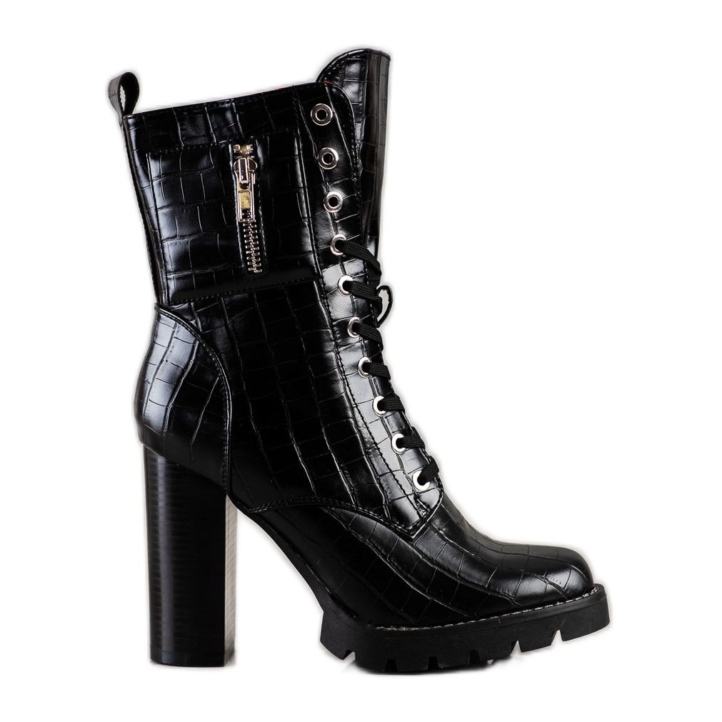 Erynn högklackade ankelstövlar är det perfekta valet för kvinnor som vill lägga till en touch av elegans och modernitet till sin stil. De är helt gjorda av ekologiskt läder av hög kvalitet och njuter av ett moderikt djurmönster som gör dem extremt originella och iögonfallande. Deras svarta färg passar perfekt in i dagens trender och gör att stövlarna matchar många stilar – från kväll till vardag.