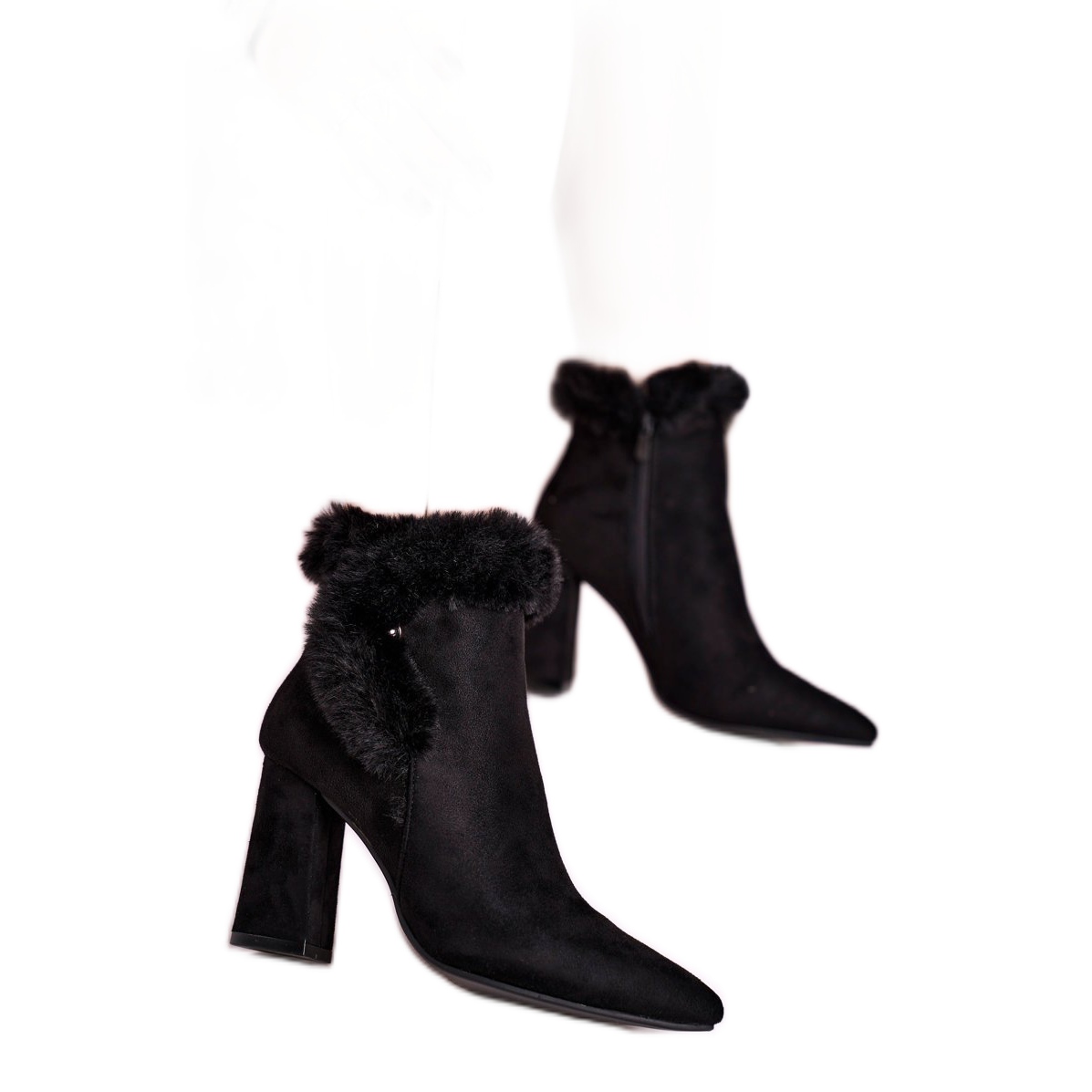 Inna marka Stövlar på en klack med pälsmocka svart Sophie