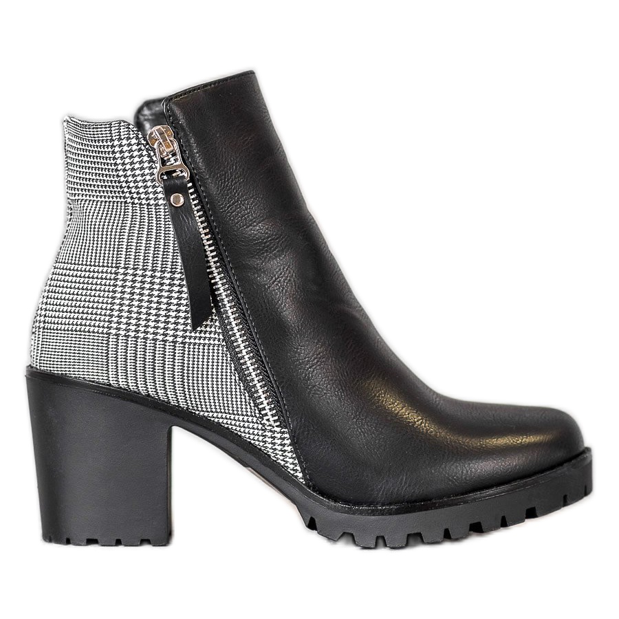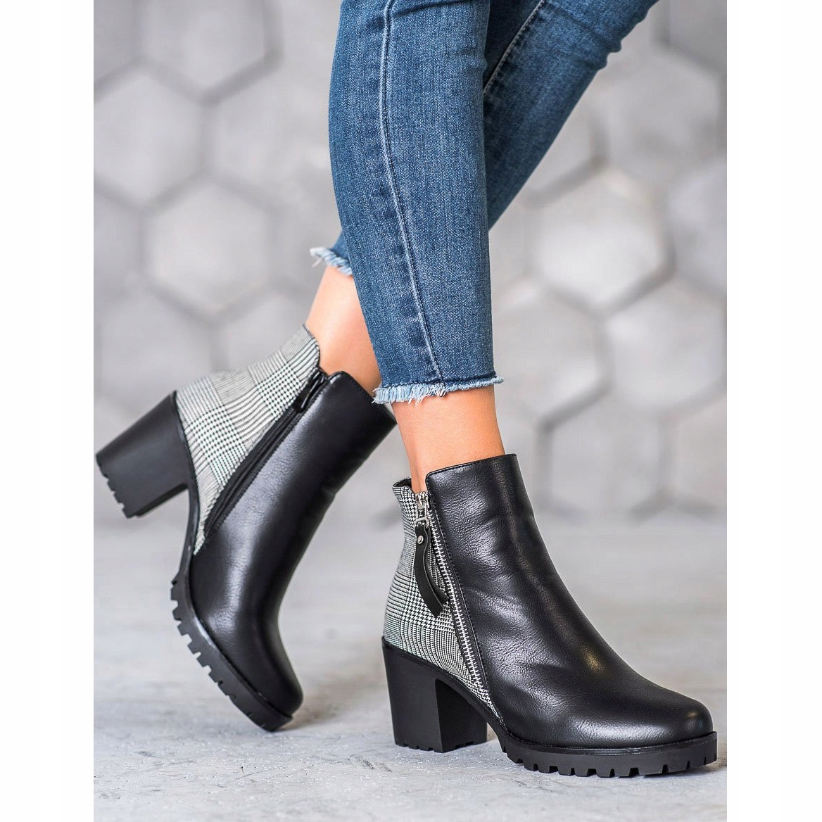 Upptäck elegans och komfort med högklackade ankelboots från märket Filippo! Dessa svarta ankelstövlar för kvinnor med ovandel som når över ankeln är det perfekta valet för kallare dagar. Framsidan av skorna ser klassiskt ut i en djupsvart färg, medan baksidan är dekorerad med ett moderiktigt svartvitrutigt mönster, vilket ger dem en unik karaktär.