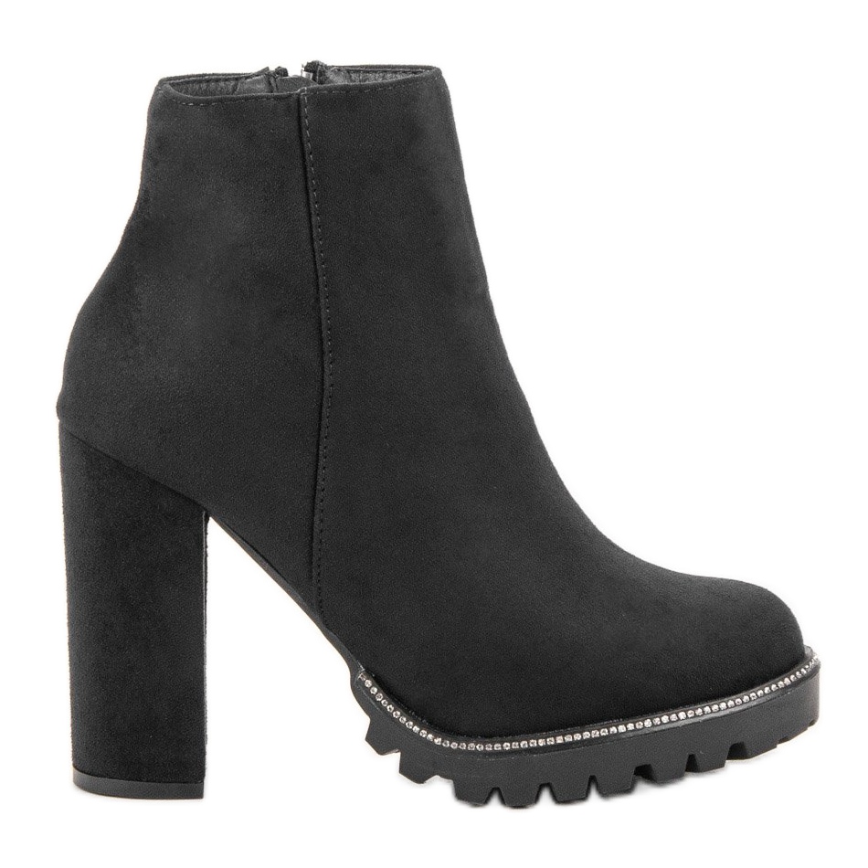 Den feminina accenten hos Kayla boots är en subtil dekoration med strass, som elegant framhäver deras moderna design. Den runda nosen och den mjuka, inbyggda hälen ger komfort, och det ekologiska lädret inuti säkerställer trevlig användning.