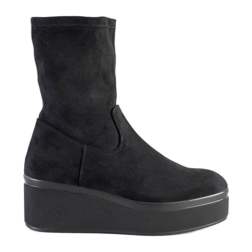 Sergio Leone plattformsstövlar i svart är ett perfekt val för moderna kvinnor som värdesätter elegans i kombination med komfort. Dessa fashionabla stövlar är gjorda av högkvalitativt eko-läder imiterad mocka och är det perfekta komplementet till höst-vinterstyling.