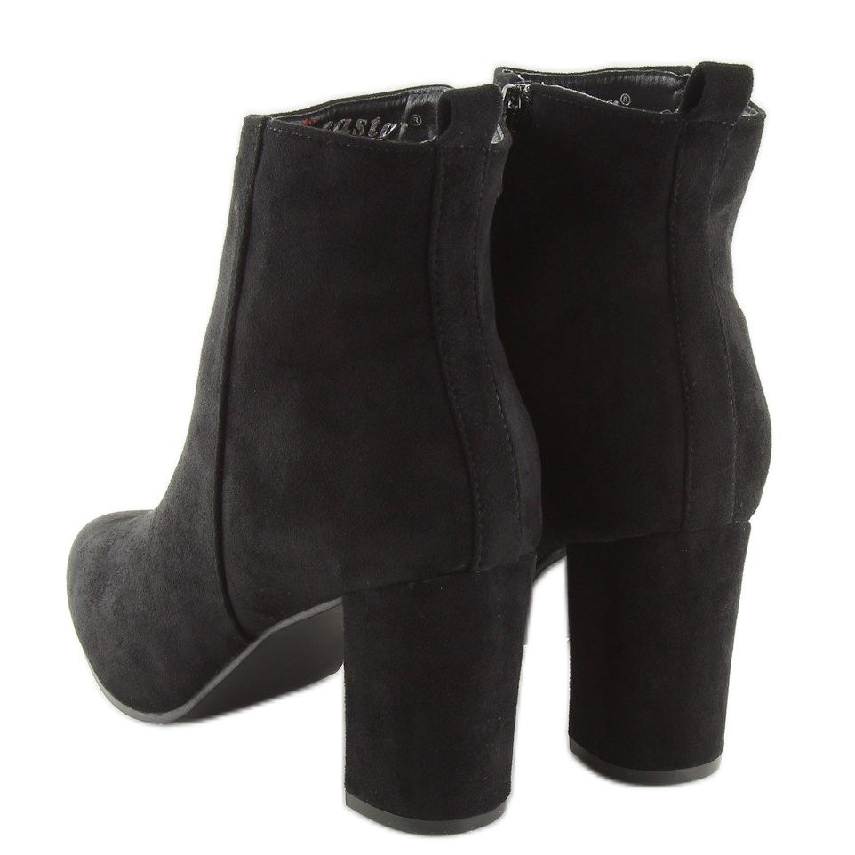 Svarta ankelstövlar med stabila klackar YQ203P är det perfekta valet för kvinnor som värdesätter elegans och komfort. Dessa tidlösa skor är gjorda av högkvalitativ eko-mocka och kombinerar klassisk design med moderna accenter. Tack vare den 8 cm höga hälen förlänger stövlarna inte bara benen vackert, utan ger också stabilitet under gång.