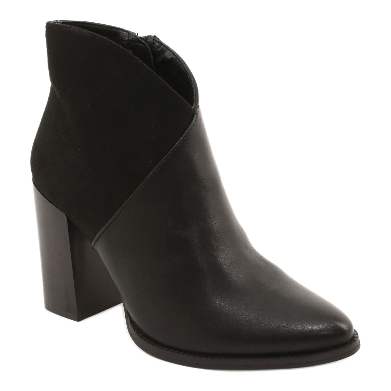 Tillverkade av högkvalitativt ekologiskt läder, lockar dessa ankelboots uppmärksamhet med sin universella svarta färg, som passar perfekt med en mängd olika stilar - från en elegant klänning till casual jeans. En smal 8,5 cm häl och en subtil, spetsig tå framhäver den feminina siluetten, vilket ger varje tillfälle en unik karaktär.