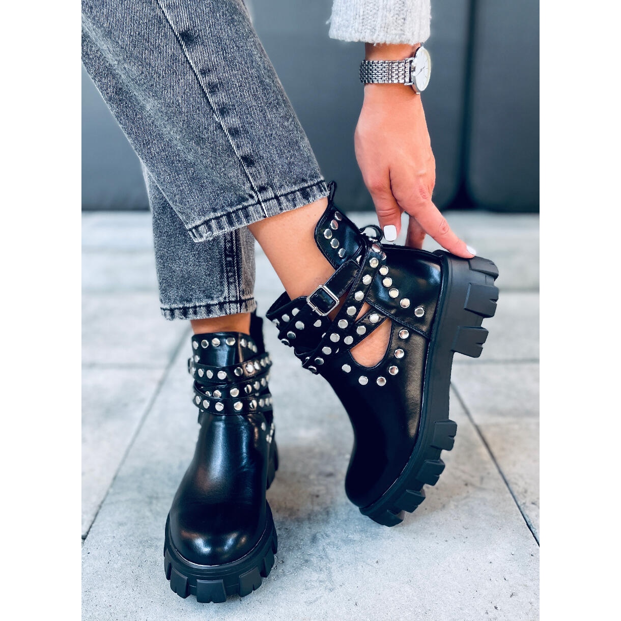 Upptäck de extraordinära svarta NC1127 svarta stövlarna med dubbar, som är en absolut hit bland modetrender! Dessa snygga ankelstövlar för kvinnor kombinerar iögonfallande utskärningar och en rockkaraktär tack vare användningen av strass och nitar. De är det perfekta valet både för dagligt bruk och för speciella tillfällen, vilket ger en unik kant till din styling.