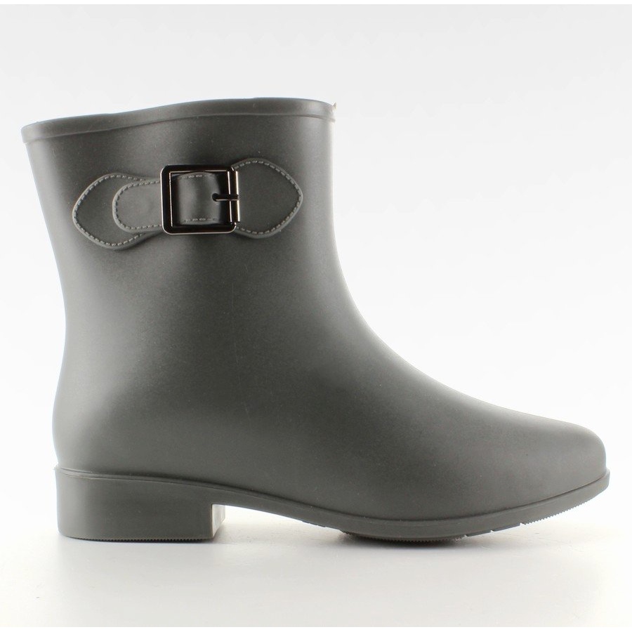 Deras ankellånga ovandel ger tillräckligt stöd, och ett delikat spänne ger elegans och subtilitet. Dessa gummistövlar är gjorda av mjukt, matt gummi och anpassar sig perfekt till foten, vilket gör dem extremt bekväma även när de bärs under långa perioder.