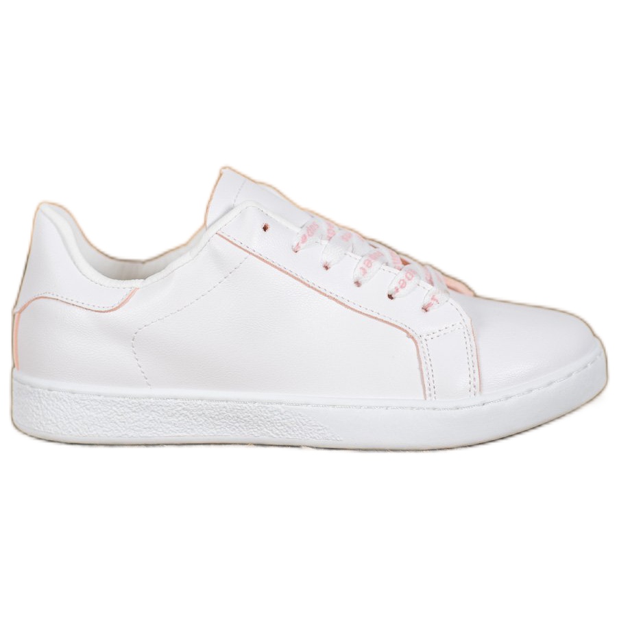 Upptäck extraordinär komfort och stil med SHELOVET Super sportskor i vitt med rosa accenter. Dessa damsportskor, gjorda av ekologiskt läder av hög kvalitet, är en perfekt kombination av funktionalitet och moderiktig design. Delikat, rosa inskriptioner på spetsarna lockar uppmärksamhet och ger karaktär, perfekt matchande vår-sommartrender.