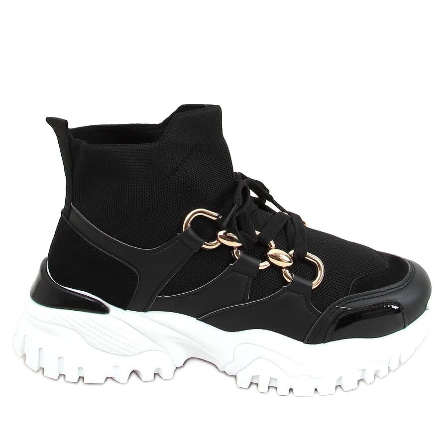 Strumpan passar perfekt till foten, vilket säkerställer komfort under vardagliga aktiviteter. Den höga sulan med iögonfallande gyllene element gör dessa skor inte bara funktionella, utan också iögonfallande. Tack vare sin universella svarta färg passar de perfekt in i olika stilar, från sport till avslappnad.