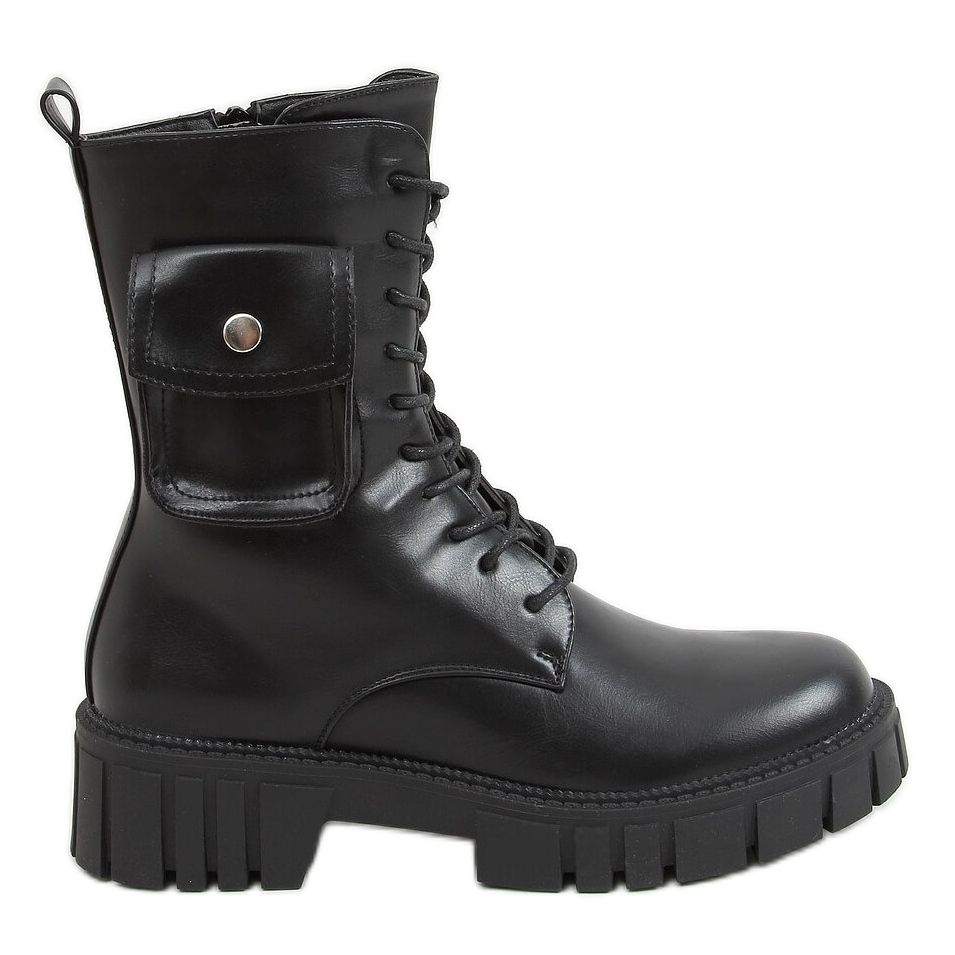 Vi presenterar damstövlar med snörning - arbetare med ficka i klassisk svart, som är det perfekta komplementet till varje vardagsstyling. Denna modell kännetecknas inte bara av sitt universella snitt, utan också av sin ursprungliga accent i form av en praktisk ficka, vilket ger den en unik karaktär.