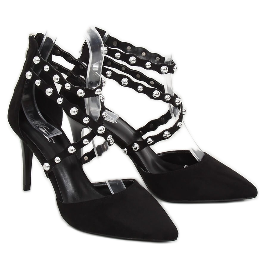 Upptäck B-50 svarta dubbklackar som tar din elegans till en högre nivå! Dessa svarta dampumps kännetecknas av en smal 9 cm hög klack, som framhäver skönheten i benen och tillför charm till varje styling.