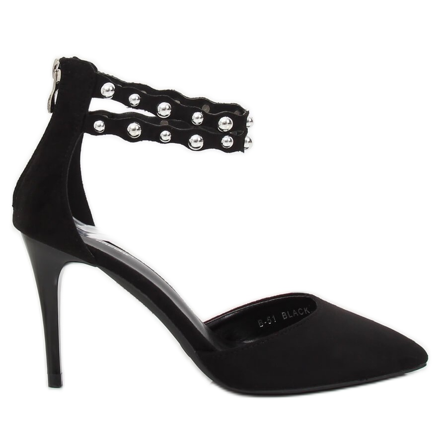 Upptäck den extraordinära charmen hos B-51 svarta dubbstiletter - det perfekta valet för kvinnor som vill kombinera elegans med lite hårdhet. Dessa 9 cm höga mockapumps imponerar med sin unika design och originaldetaljer.