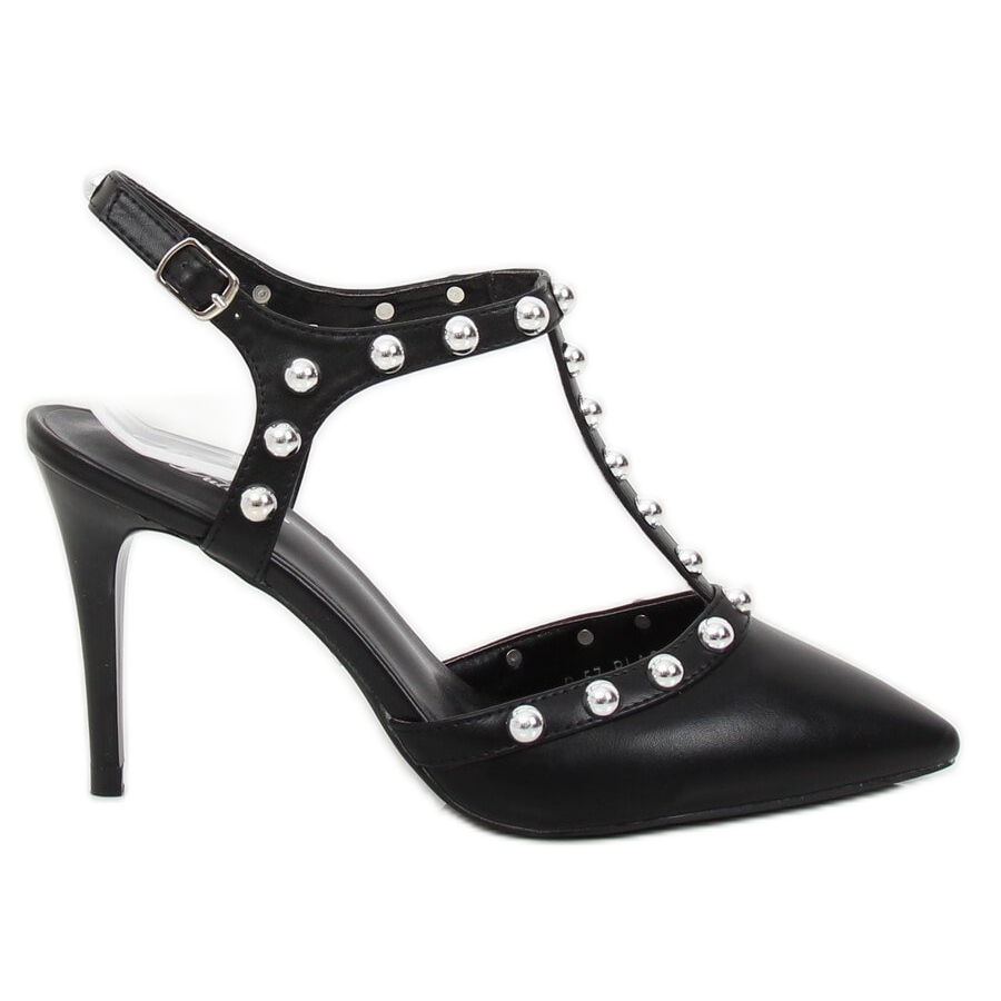 Upptäck raffinerad elegans med B-57 Black dubbade klackar! Dessa svarta dampumps är det perfekta valet för kvinnor som vill lägga till en unik karaktär till sin styling. Modellen kännetecknas av en öppen häl och spännande remmar översållade med strass. Sådana detaljer gör att de höga klackarna ser fenomenala ut på benet, lockar uppmärksamhet och lägger till självförtroende.