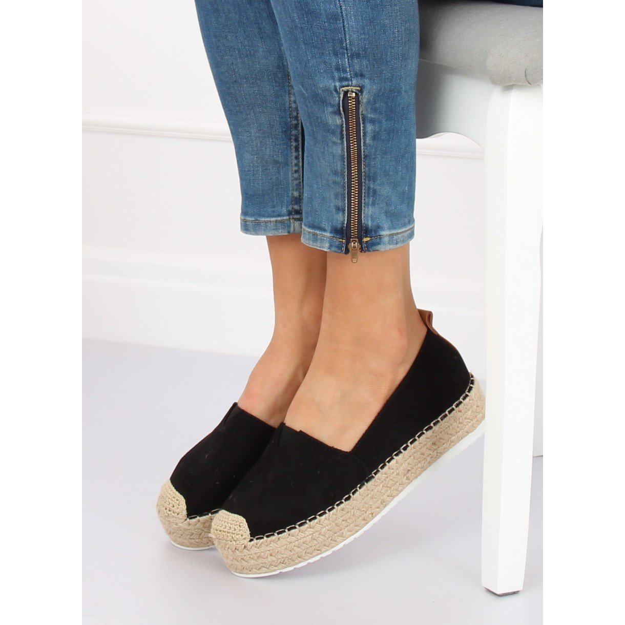 Den höga sulan, 3 cm hög, gör att espadrillorna inte bara framhäver figuren, utan även matchar perfekt med olika stilar. De kommer att se bra ut med jeans, shorts eller luftiga klänningar, vilket gör dem till ett universellt garderobsobjekt för alla tillfällen.