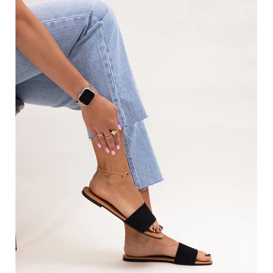 Svart broderade Marika Flip Flops är ett utmärkt val för varje kvinna som vill kombinera stil med komfort på sommardagar. Dessa slip -up -flops har utformats för maximal komfort, tack vare vilka de är perfekta för sommarvandringar eller vila på stranden.