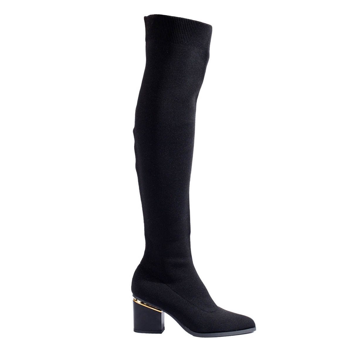 Tårna på skorna är mandelformade och fylliga, vilket garanterar elegans och en tidlös look. Höjden på överdelen, som når över knät, framhäver musketörernas karaktär och förlänger benen underbart. Yttermaterialet är tyg och även innersulan är av textil, vilket säkerställer en bra känsla vid varje steg.