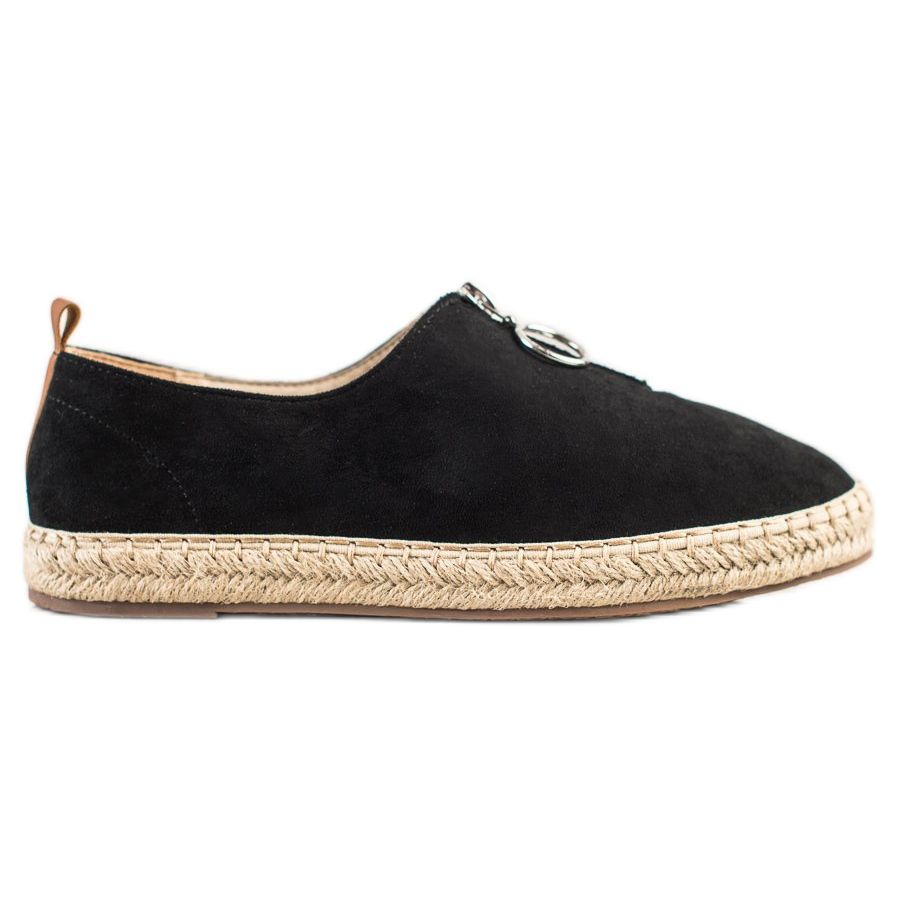 Den största fördelen med espadrillorna är den dekorativa silverdragkedjan, som inte bara ger dem en modern karaktär, utan också gör dem lättare att ta på. En stabil 2,5 cm hög plattform, inlindad i ett lätt snöre, är en perfekt lösning för dig som värdesätter komfort och elegant utseende.