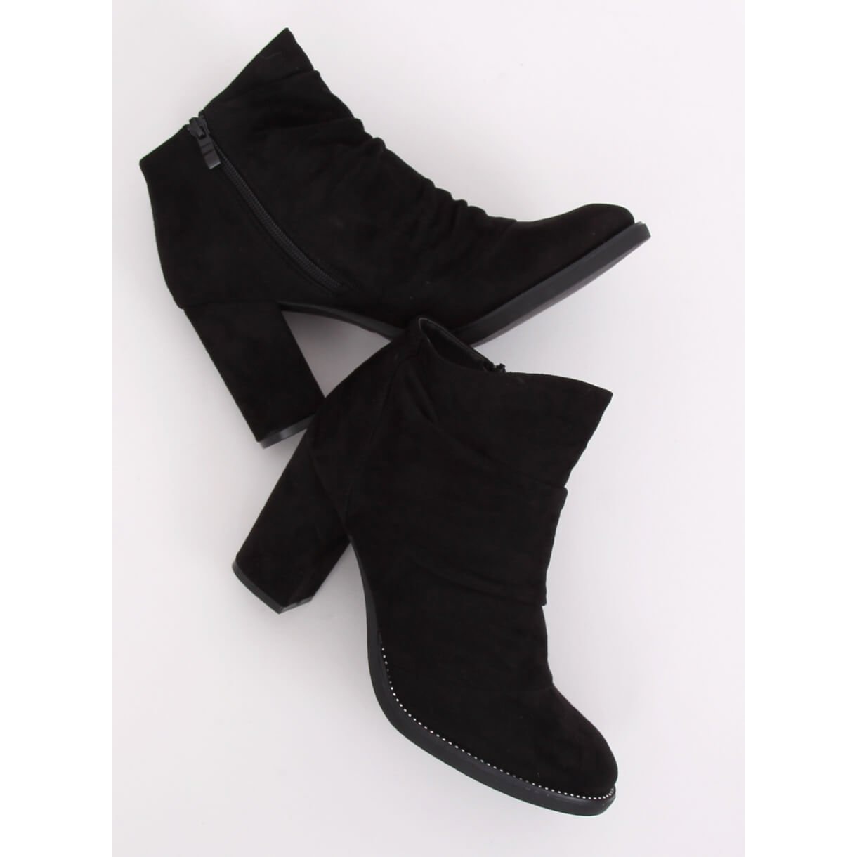 Upptäck elegans och komfort med svarta FA177 svarta högklackade ankelboots som kommer att glädja alla modeälskare. Dessa unika ankelstövlar för kvinnor kombinerar klassisk design med moderna accenter. Deras hälhöjd på 9 cm säkerställer optisk förlängning av benen, och den stabila stolpen garanterar komfort att bära hela dagen.