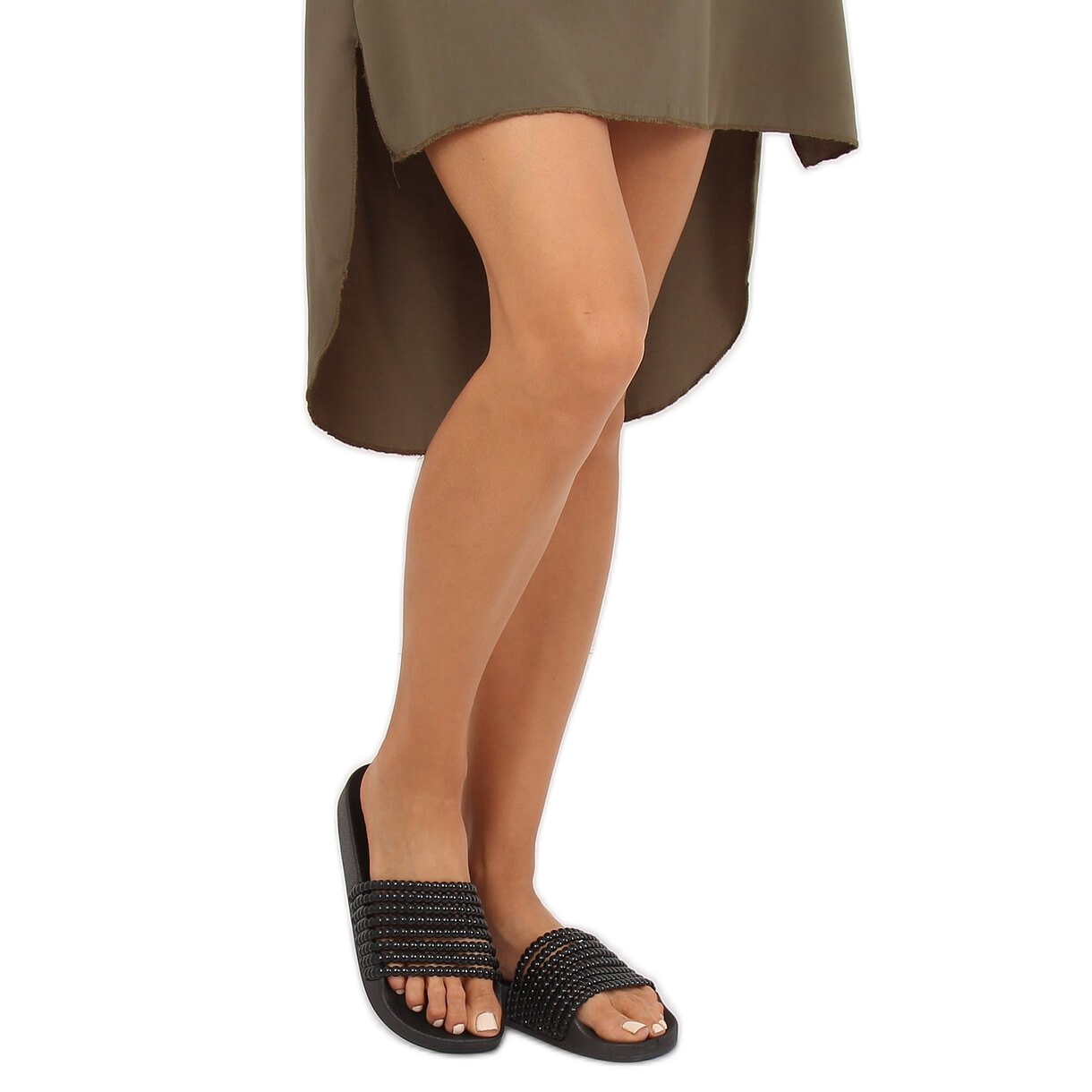 Information: Svart G301 Svarta tofflor med pärlor