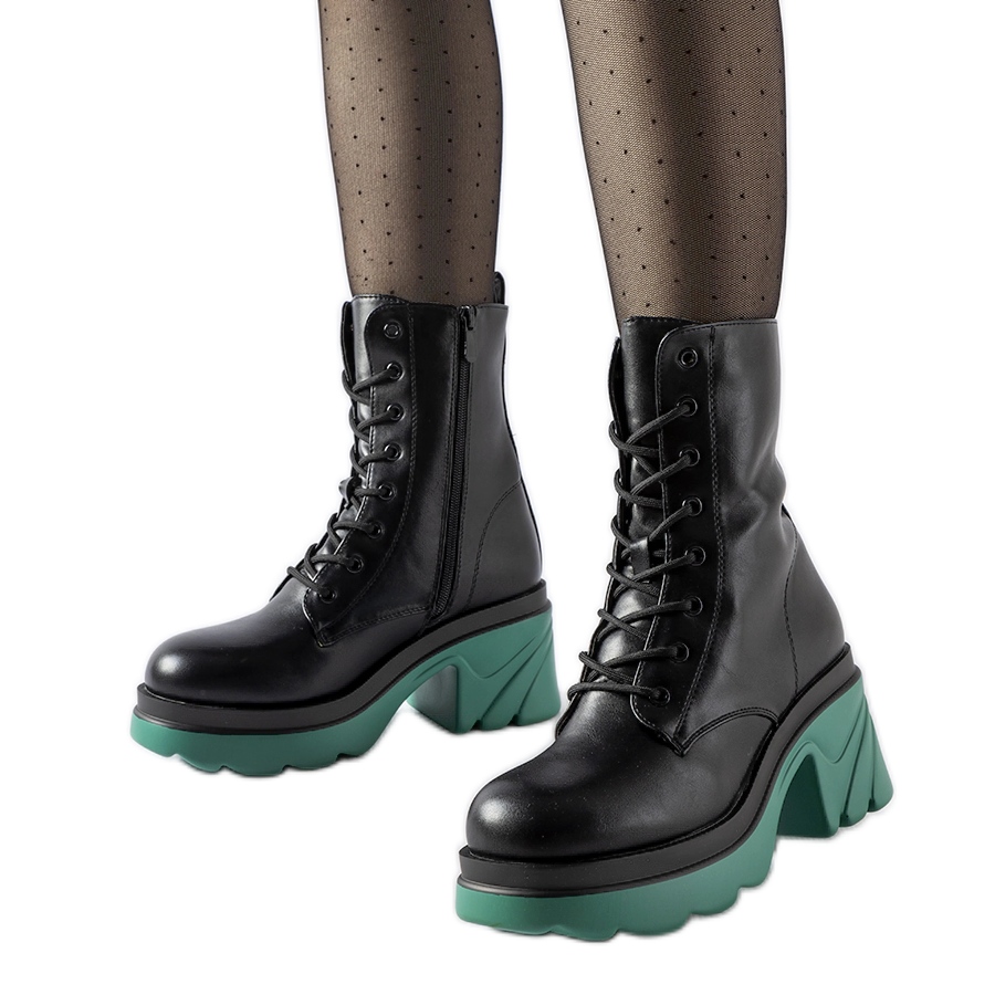 Dessa arbetare är högt över ankeln för extra stöd och komfort. De passar perfekt till en mängd olika outfits – från lösa byxor till luftiga klänningar. Den svarta färgen gör dem extremt universella, och den gröna sulan ger dem en originell karaktär.