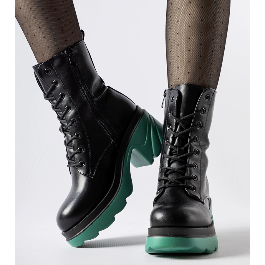 Isoleringen som används i väskorna garanterar värme, vilket gör dem till ett perfekt val för vinterpromenader, shopping eller möten med vänner. Tack vare sidodragkedjan blir det ett nöje att ta av och på skorna, och snörningen möjliggör individuell anpassning till foten. Den runda tån och den höga hälen framhäver inte bara den moderna designen, utan lägger också till elegans till varje styling.