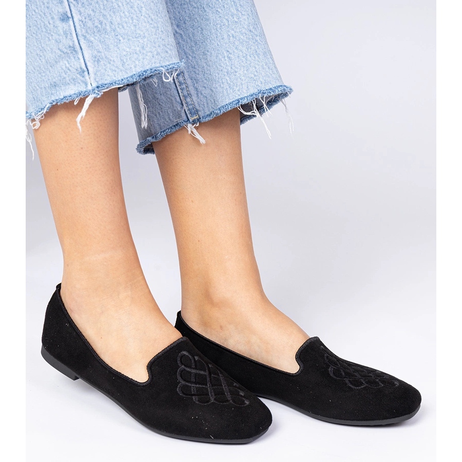 Inna marka Svart kvinnors ekozamszowe ballerinas med broderi