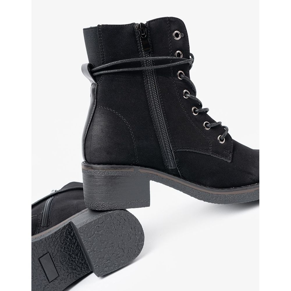 Detaljer: Shelvt Svart låghelade spets -up stövlar