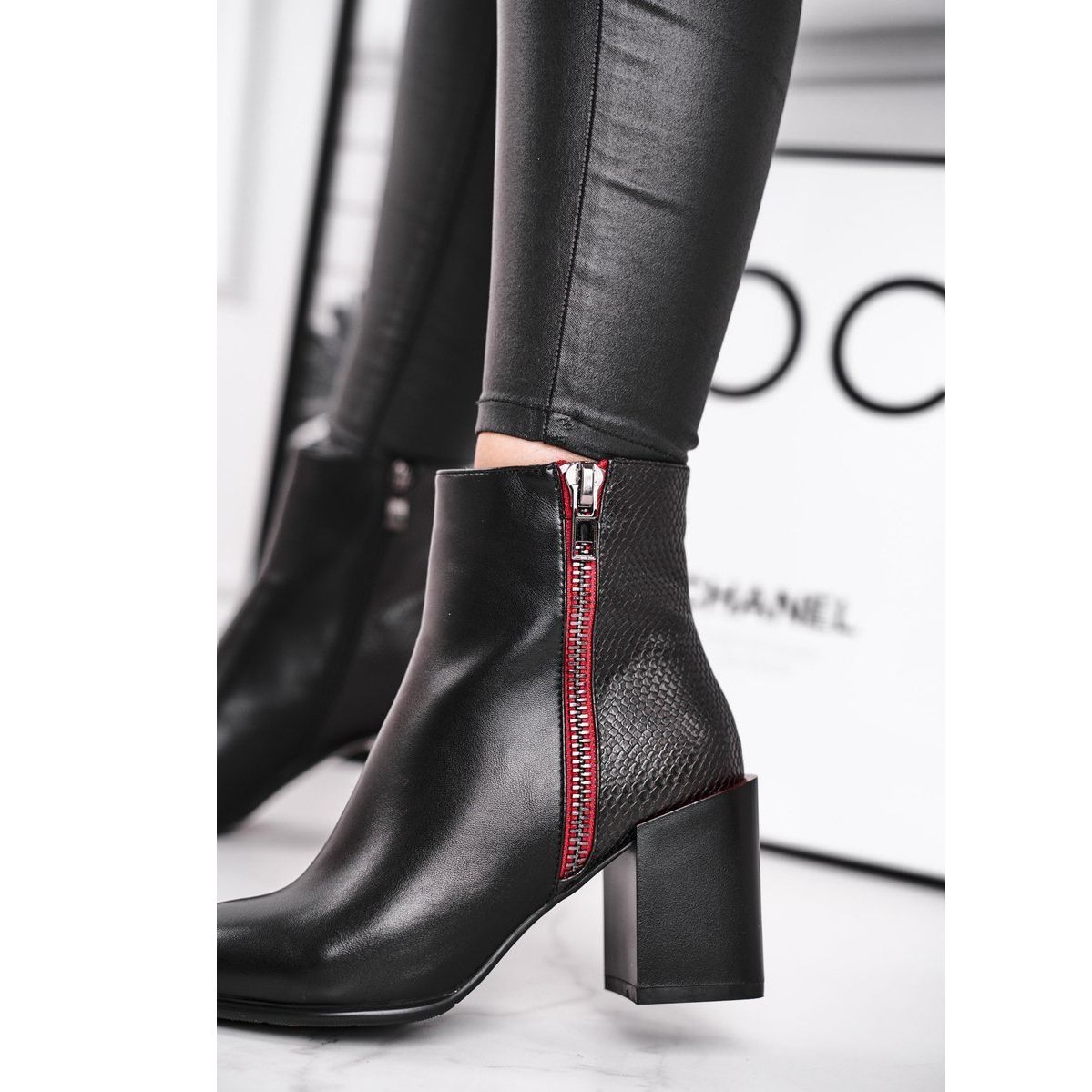 Upptäck komfort och elegans med S.Barski ankelstövlar för kvinnor. Modellen dekorerad med en svart stolpe med röda accenter är en perfekt kombination av klassiskt och modernt, iögonfallande. Ställda på en medelhög, 7,5 cm stolpe, ger de stabilitet och komfort hela dagen.
