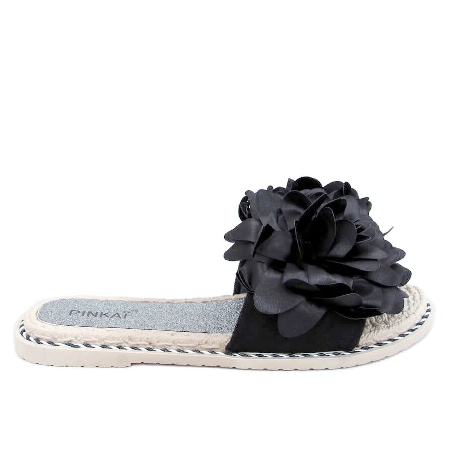 Inna marka Svart LS005 Svarta damtofflor med blommor