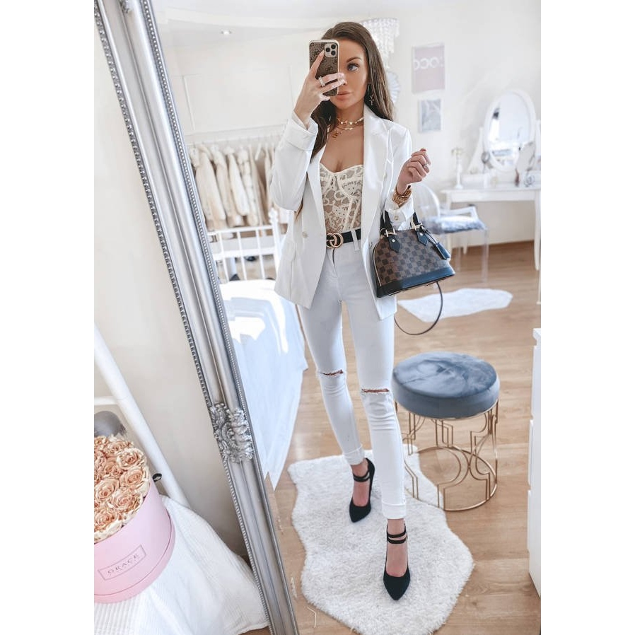 Klackhöjden på 11 cm gör att figuren ser smalare ut och benen ser längre ut. Dessutom säkerställer elastiska band insydda i spännet en perfekt passform, vilket garanterar komfort att bära hela dagen.