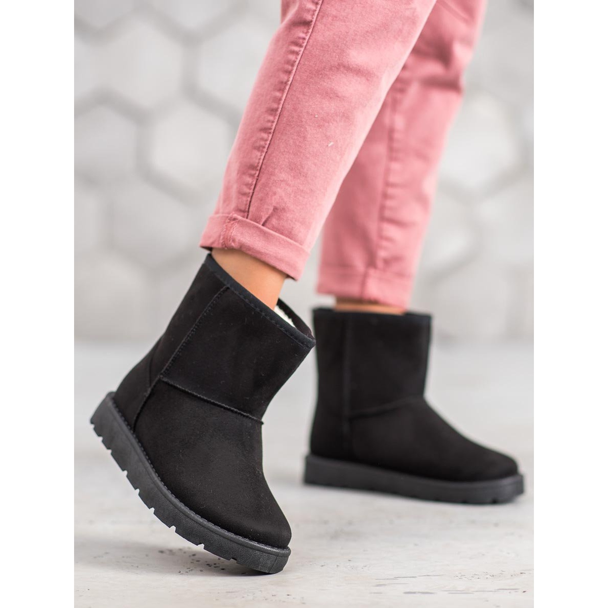 Dessa skor är inte bara moderiktiga, utan också funktionella. Tack vare slip-on-designen kan du snabbt och enkelt ta på dem, vilket gör dem perfekta för vardagsbruk. Solida sulor isolerar effektivt från den kalla marken, vilket säkerställer komfort även under de kallaste dagarna. Dessutom gör den övre höjden på 15-16 cm och bredden på 28-32 cm att dessa skor passar perfekt till foten.