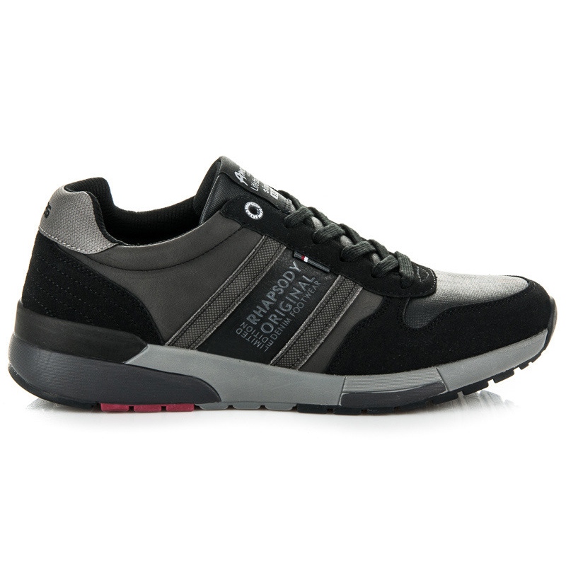 American Club - svarta sportskor för män som kombinerar klassiskt med modern design. Tillverkade av naturligt läder, i eleganta nyanser av svart och grått, de är perfekta för både vardagsbruk och lätt aktivitet. Låga snörningssnitt garanterar rörelsefrihet och en bekväm passform.