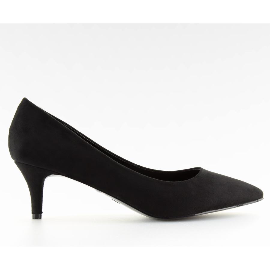 Eleganta pumps gjorda av ekologisk mocka är ett perfekt val när du bryr dig om stil och komfort. Den låga, stabila hälen på 6 cm säkerställer komfort hela dagen, och den delikata mandeltån gör figuren subtil smalare. Slip-on-modellen, utan mönster, i universalsvart kommer att fungera bra både på kontoret och för speciella tillfällen.