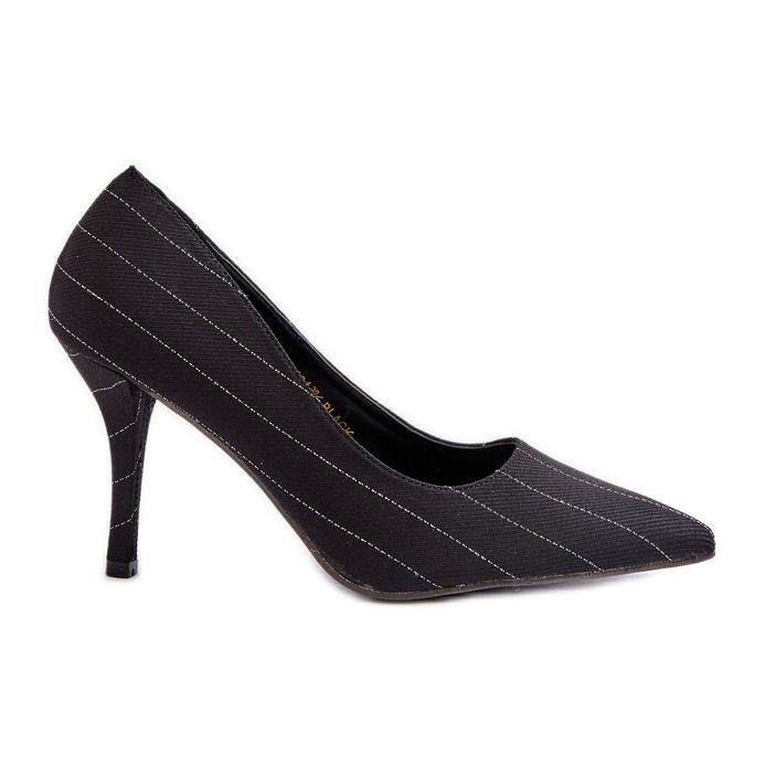 - Modell: Högklackat randigt svart tyg för kvinnor