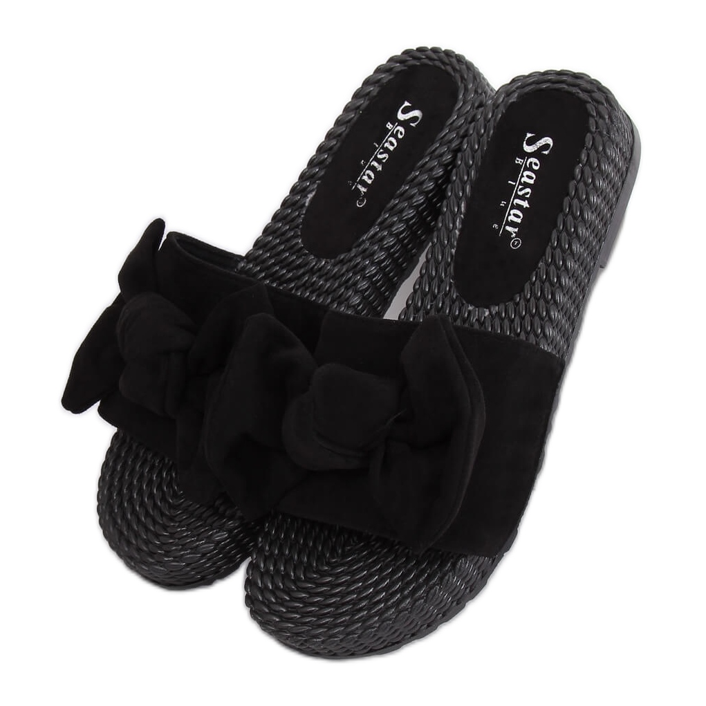 Detaljer: Svarta damtofflor med rosett YQ225P Svart