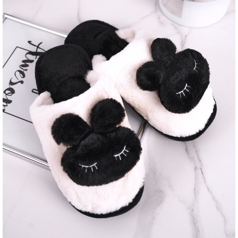 Information: Svart tofflor i kaninpäls för kvinnor vit