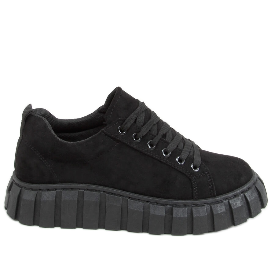 Upptäck den senaste trenden inom skomode med 19287 All Black sneakers med tjocka sulor! Dessa damsneakers med snörning i mocka är en absolut hit för den här säsongen, som säkerligen kommer att locka uppmärksamheten från alla avslappnade stilälskare. Den karakteristiska, tjocka sulan med en höjd på 3,5 cm ger inte bara en fashionabel accent, utan säkerställer också komfort under vardagliga aktiviteter.