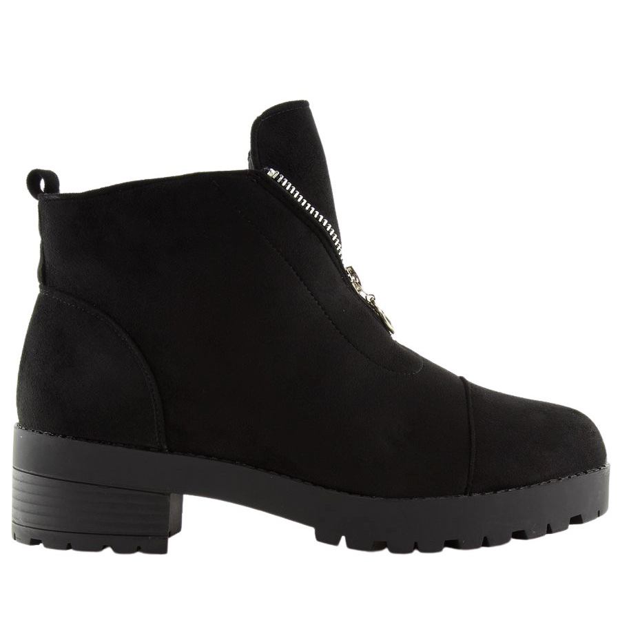 2017-3 Svarta ankelstövlar med hög sula är ett perfekt komplement till alla kvinnors garderob. Dessa eleganta och snygga skor, gjorda av ekologisk mocka, kombinerar klassisk med modern design. Den tjockare, fångade sulan säkerställer komfort och stabilitet, och höjden på 4,5 cm gör dem perfekta för dagligt bruk.
