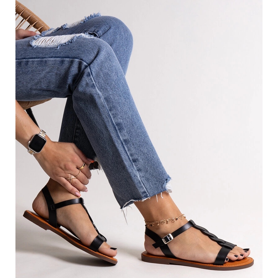 Svarta platta sandaler Amaranth är det perfekta valet för sommardagar och kombinerar stil och komfort. Tillverkade av högkvalitativt ekologiskt läder, de säkerställer komforten att bära även på varma dagar. Deras klassiska design gör att de smälter bra med olika stiliseringar - från avslappnad till mer eleganta.