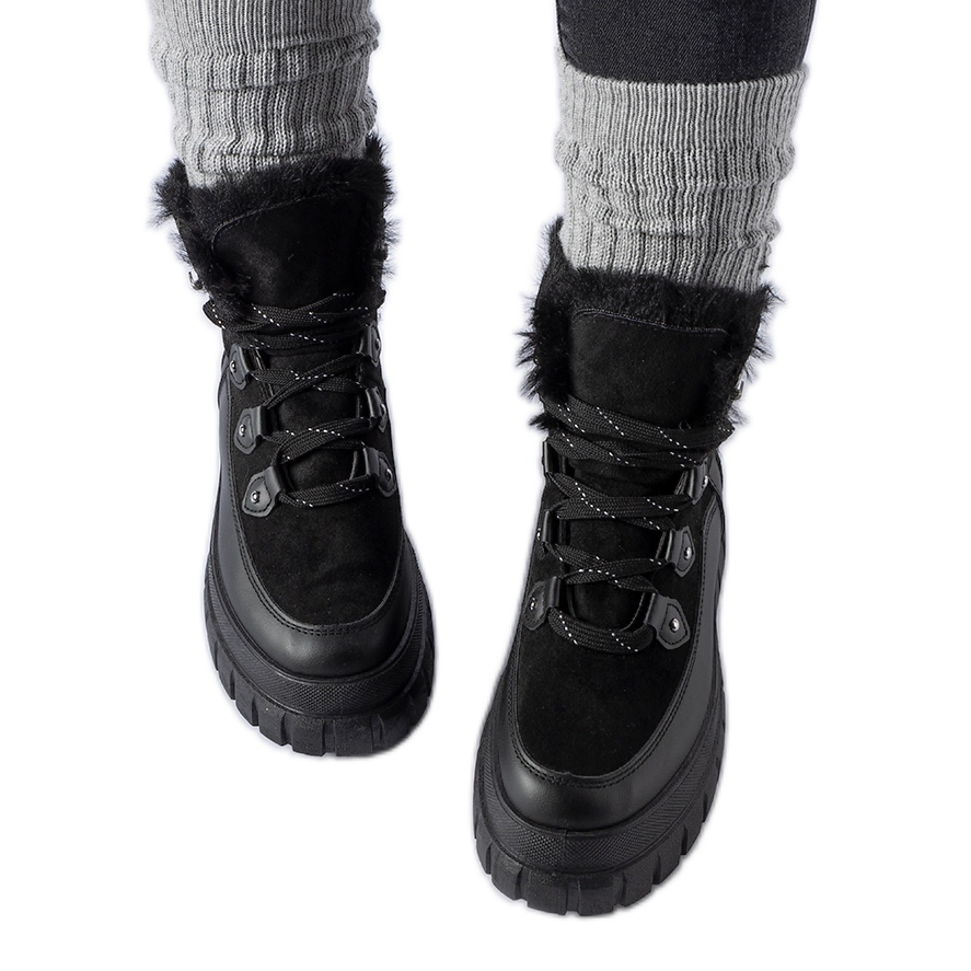 Svarta stövlar på den massiva cervantes sula, komfort och värme på svalare dagar. Den klassiska kuben som skärs i en modern upplaga: en ekologisk läderöverdel med en spektakulär struktur ger skorna karaktär, och den runda näsan betonar den universella, eleganta utseendet. Att låsa med ett gummielement på det övre gör att du enkelt kan justera bredden, tack vare vilken skorna anpassas perfekt till foten. Isolerad interiör med päls ger trevlig värme även vid låga temperaturer, och en massiv gummisula och plattform (6 cm) garanti stabilitet och dämpning vid varje steg. Tack vare den genomsnittliga höjden på den övre (cirka 19 cm) kommer stövlarna att fungera både för vardagliga och mer eleganta stiliseringar.