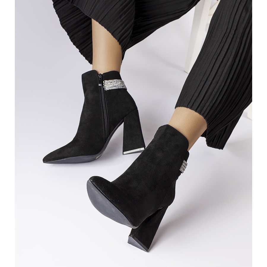 Detaljer: Svarta ankelboots med zirkoner från Liviana