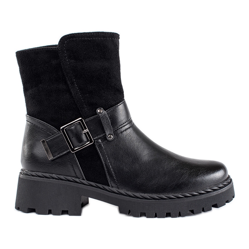 Detaljer: Svarta ankelstövlar för kvinnor med ett dekorativt lås