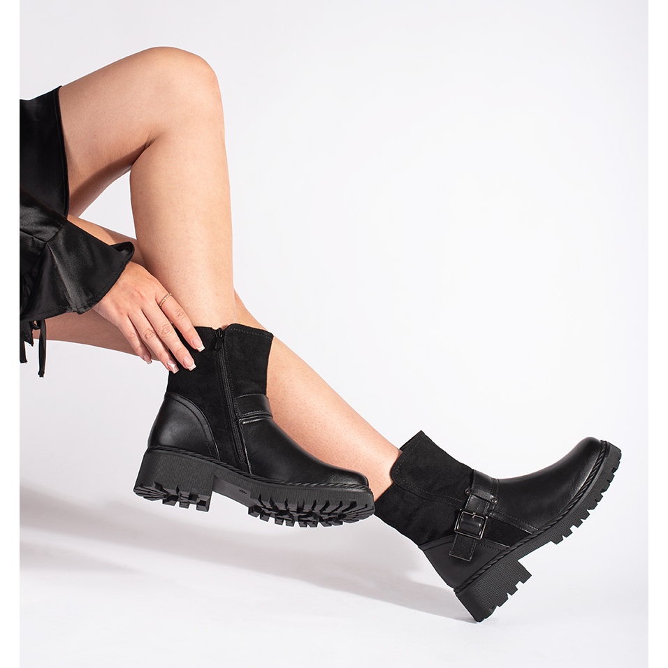 Dessa stövlar kännetecknas av en inbyggd -upp -häl och en platt häl med en höjd av 4,5 cm, vilket säkerställer komforten att bära även under lång tid. En rund näsa och uppvärmning gör att denna modell fungerar bra på svalare dagar, och plastsula garanterar tillräcklig hållbarhet och vidhäftning.