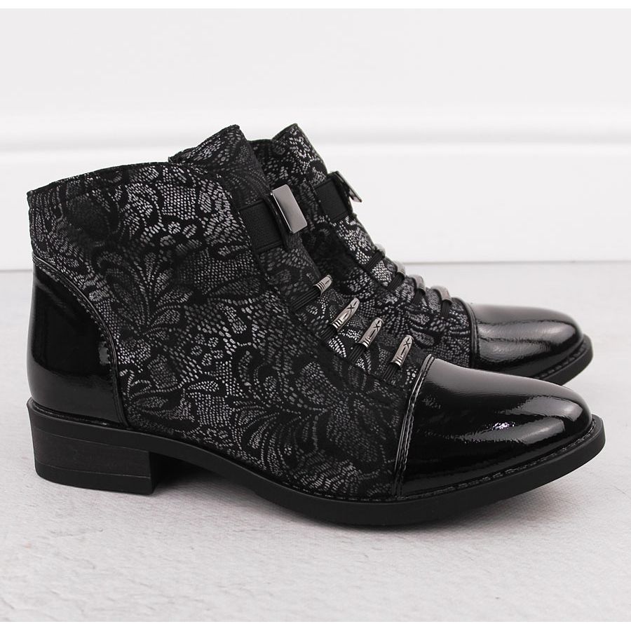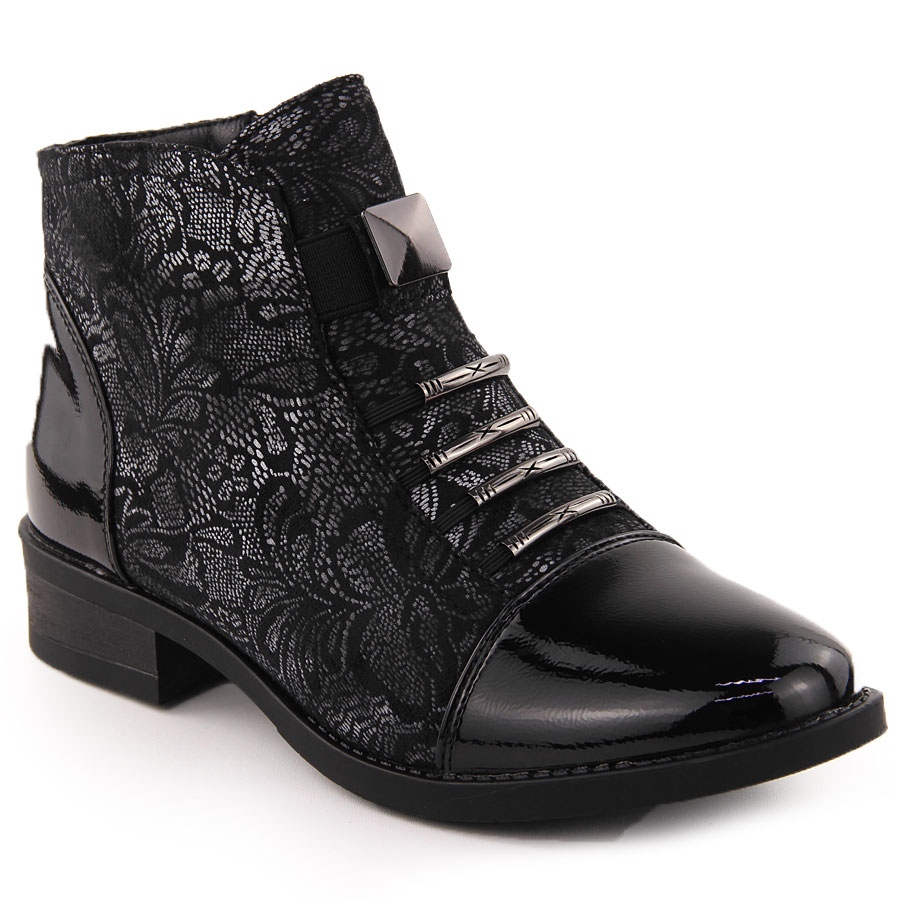 Information: Svarta ankelstövlar för kvinnor med silverblommamotiv Sabatina DM24-08