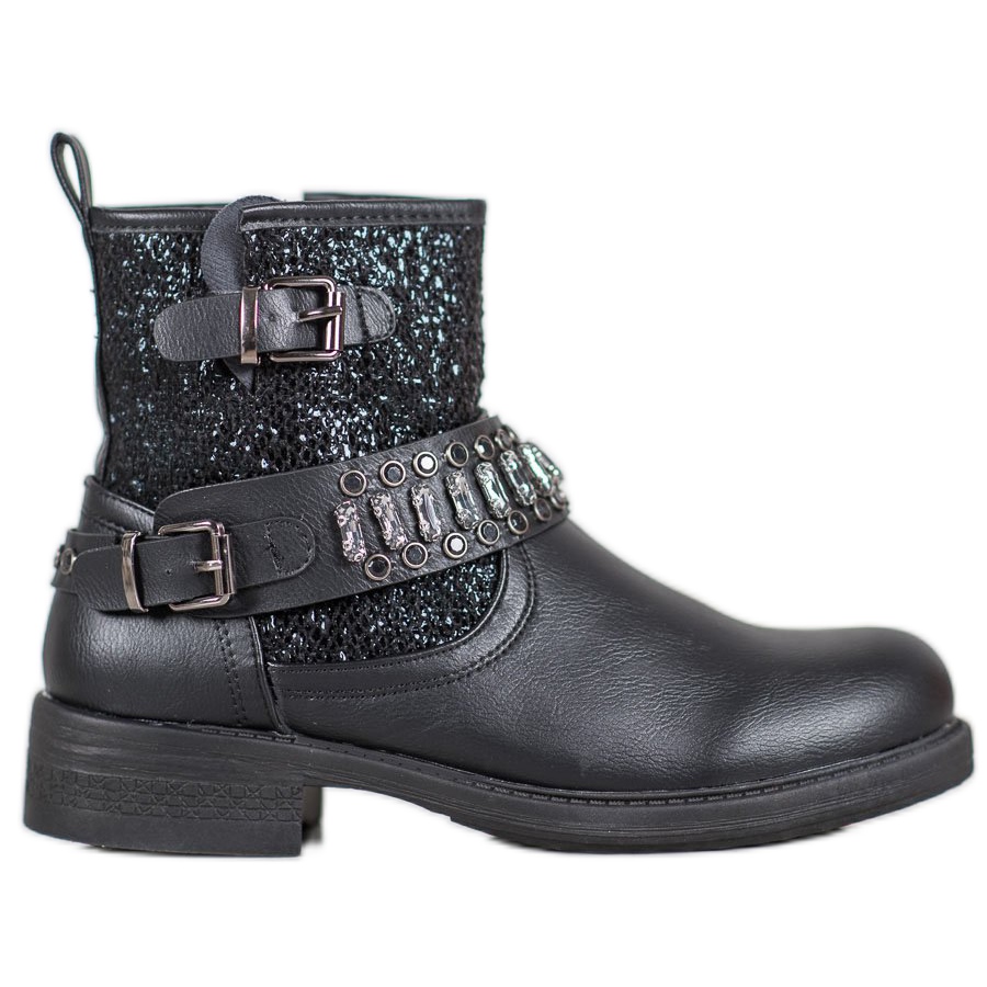 Black Bestelle Workers är det perfekta valet för kvinnor som letar efter moderiktiga och bekväma skor för höst/vintersäsongen. Dessa ankelboots är gjorda av högkvalitativt läderimitation och kombinerar stil och komfort perfekt. Deras unika design är berikad med ett dekorativt spänne, strass och kristaller som ger dem en unik karaktär.